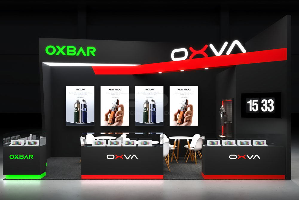 During the preliminary design phase, Zedi Exhibition deeply researched OXVA's brand culture, product features, and local aesthetic preferences in Spain, integrating minimalist and stylish design elements into every detail of the "Vapexpo Spain Booth Construction". The goal is to create a display space that not only conforms to international trends but also highlights the brand's personality.