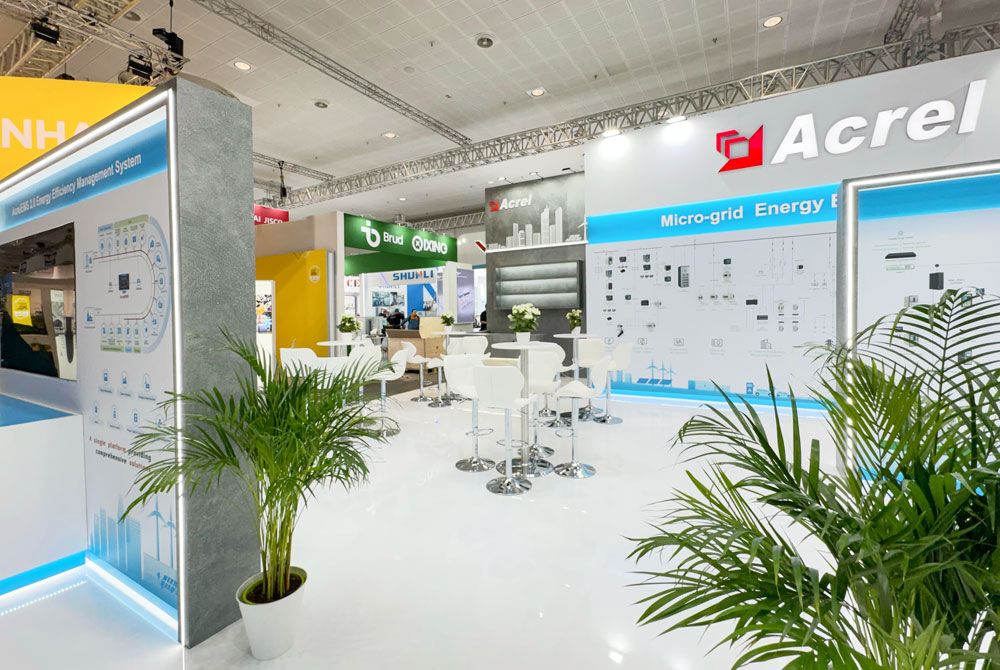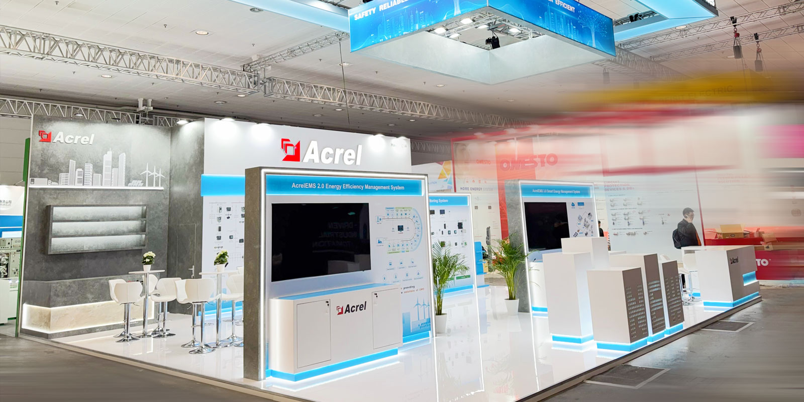 From the overall design perspective, the booth presents a simple and elegant atmosphere. ZEDI EXPO ingeniously uses blue and white as the main color tones. Blue, symbolizing technological industry, professionalism, and stability, perfectly matches Acrel's professional image in the industry; white represents purity, innovation, and simplicity, adding a fresh and modern touch to the entire booth. The blue-and-white color scheme stands out among numerous booths at the Hannover Exhibition Center in Germany, creating a strong visual impact and making Acrel's booth the focus of visitors' attention.