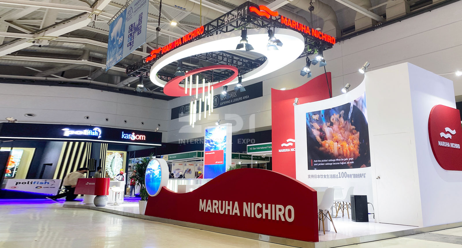 2023年中国(青岛)渔业展览会(SeaFareChina)已于2023年10月25日~10月27日在红岛国际会议展览中心举行,泽迪展览首次携手“maruha nichiro"亮相该展会,本次maruha nichiro展台占地面积为70㎡,简约统一风,整体材质:木结构+乳胶漆+烤漆柜子,材料包括金属发光字 软膜绷布 发光灯光 灯箱 十公分地台 三聚氢案板金属包边 雪弗板字 写真等。