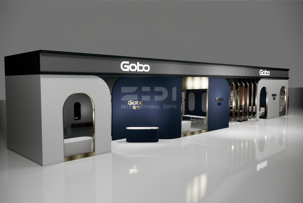 本次展台高宝卫浴占地面积为96平,全封闭式设计方式, 室内色彩搭配亮眼和谐,使空间色彩呈现出丰富层次的时尚感,自然地给消费者营造出一种愉悦、便捷的购物体验气氛,对于当今消费者的消费观念说非常重要,通过展台空间形式与企业产品融合展出的一个巧妙设计手法,让人身在其中有更加全面直观的感受和体验,进而突出各个区域中的品牌产品元素,最终形成一个既优雅轻奢的展示空间,