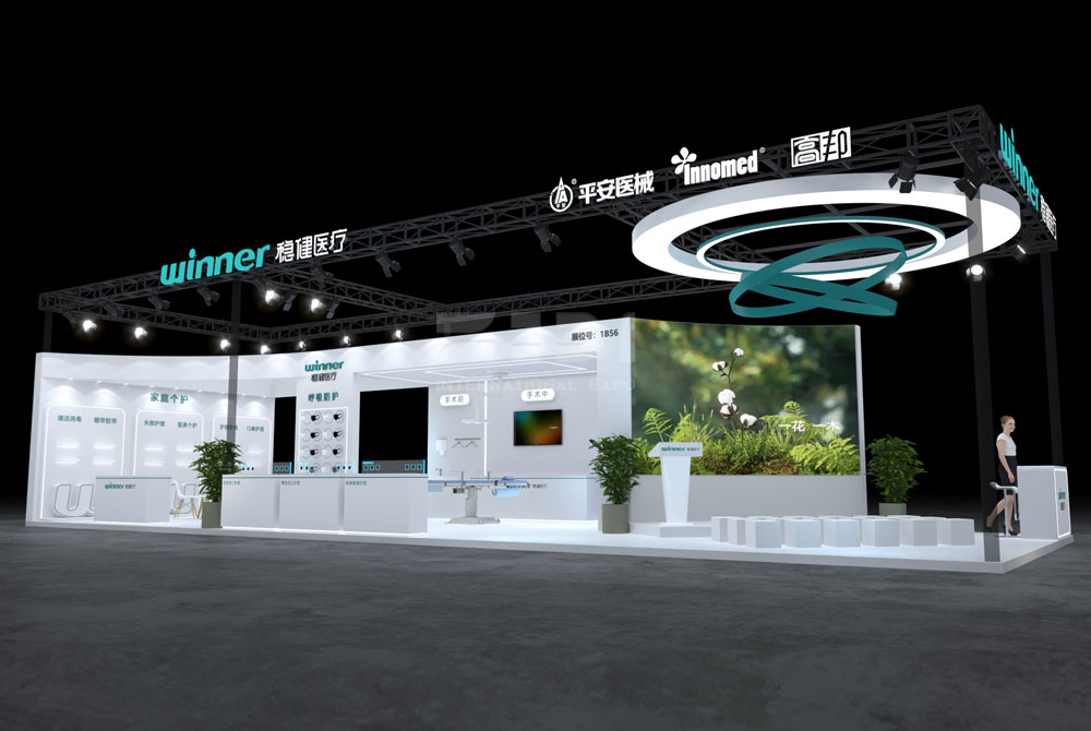 此次展会展台占地面积108平方米,色调以白色为主,主体结构主要以木结构为主,主要材料包括:truss架 无边发光字 烤漆柜 皮凳 灯带灯箱 发光软膜等。