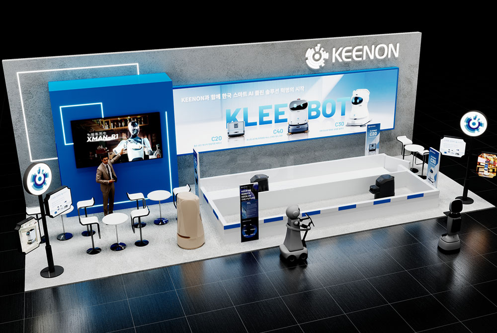 In 2025, Clean Korea grandly opened in Seoul. The 54-square-meter booth created by KEENON has become the focus of the exhibition with its modern minimalist style and ingenious design, endowing a brand-new scene for the display of intelligent cleaning equipment. The booth uses blue and gray as the main colors, integrates the modern minimalist style, and adopts a traditional square structure, demonstrating the charm of intelligent cleaning technology in a regular space.